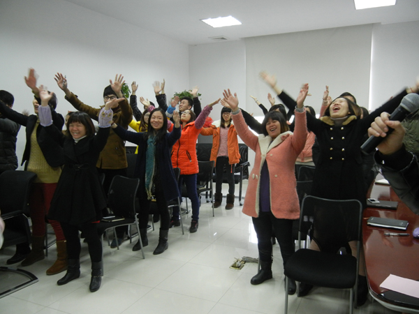 大會在一支輕松愉快的按摩操中拉開帷幕,這次會議由銷售部李培剛擔任主持。