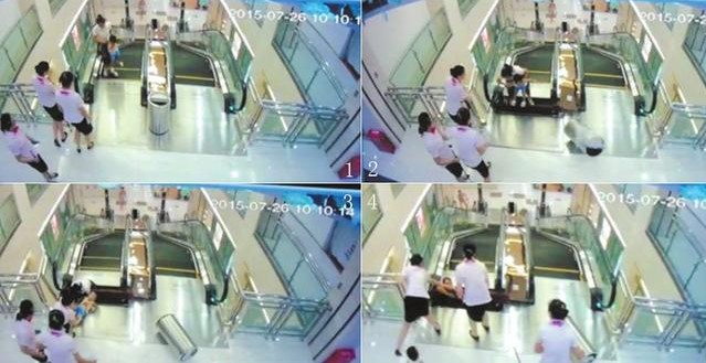 26日上午10時左右,湖北荊州安良百貨商場發生了一起電梯安全事故。一名30歲左右女子帶著一小孩經手扶電梯上樓,臨近上一樓層電梯到達口時,電梯踏板突然塌陷,在該女子墜落電梯里的那一瞬間,她雙手托起隨行的孩子,而自己在三位商場女迎賓人員的面前活生生地被卷入了電梯里。從監控視頻來看,其慘烈程度讓人驚悚。待營救人員趕到現場,該女子已無生命體征。