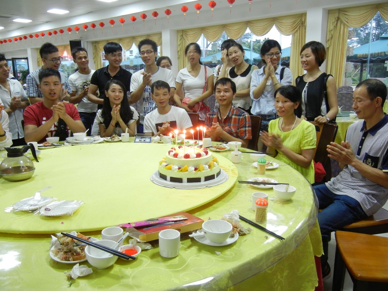 晚飯時間舉行傲群每月一次的生日會,為9月份生日的伙伴們送上祝福,旅行社還為我們準備了大大的生日蛋糕,小編也遇上9月生日,感到很幸福!