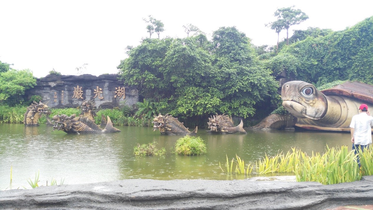 毛毛細雨,悄悄無聲地飄落著,我們到達第一站國家AAAA景區【湖光巖】,這里最為吸引人的就是湖中有巨獸,導游說只有當官的人才能看到水怪哦!