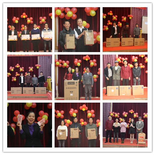 中間穿插著游戲和抽獎,晚會氣氛一度推高,大家又玩由吃,不亦樂乎。