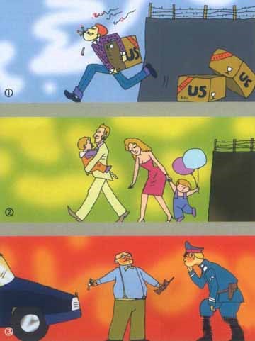 三年過后,第一個沖出來的是美國人,嘴里鼻孔里塞滿了雪茄,大喊道:“給我火,給我火!”原來他忘了要火了。