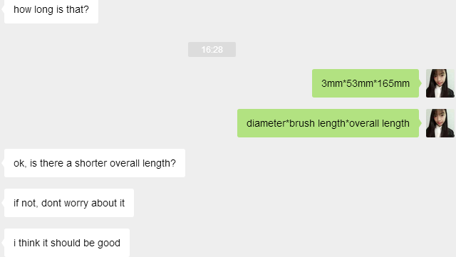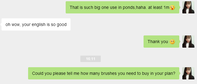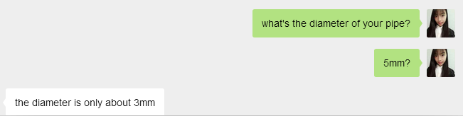 很幸運,客戶很快就給我回復了郵件,并讓我加他的微信。了解到客戶是需要清潔毛刷來清洗他們的不銹鐵鐵鋼管道,那么我需求知道管的大小,從而推薦適合管道尺寸的毛刷給客戶。