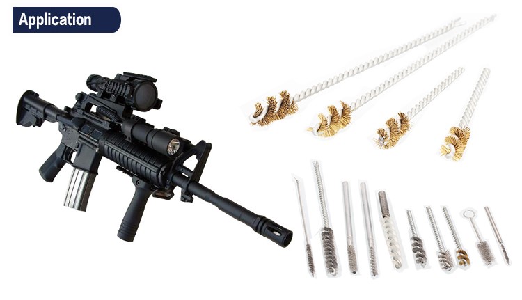 槍刷與其他清潔刷不一樣,它選用的材質(zhì)是銅絲或鋼絲,用于清潔腔壁,甚至在槍支器械的精加工中用于拋光。因為槍支使用后,腔壁里面會有一定熱量,而且臟物很難清洗干凈,必須使用耐高溫和足夠硬的毛料的毛刷進(jìn)行清潔。